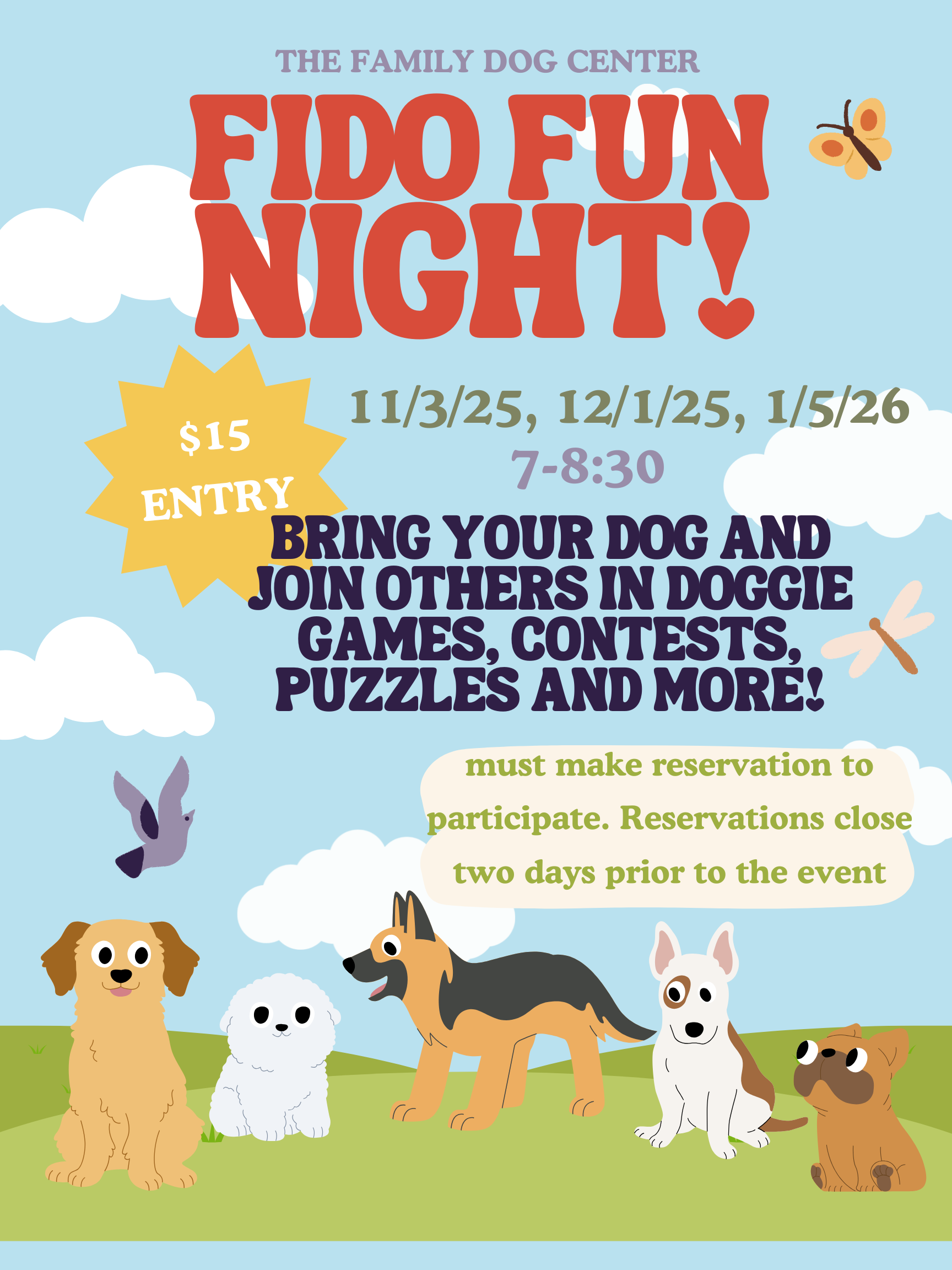 Get ready for a spooktacular, fun-filled Halloween party at Family Dog Center! From games to special prizes for those dogs in costume, it's sure to be a hauntingly exciting party!