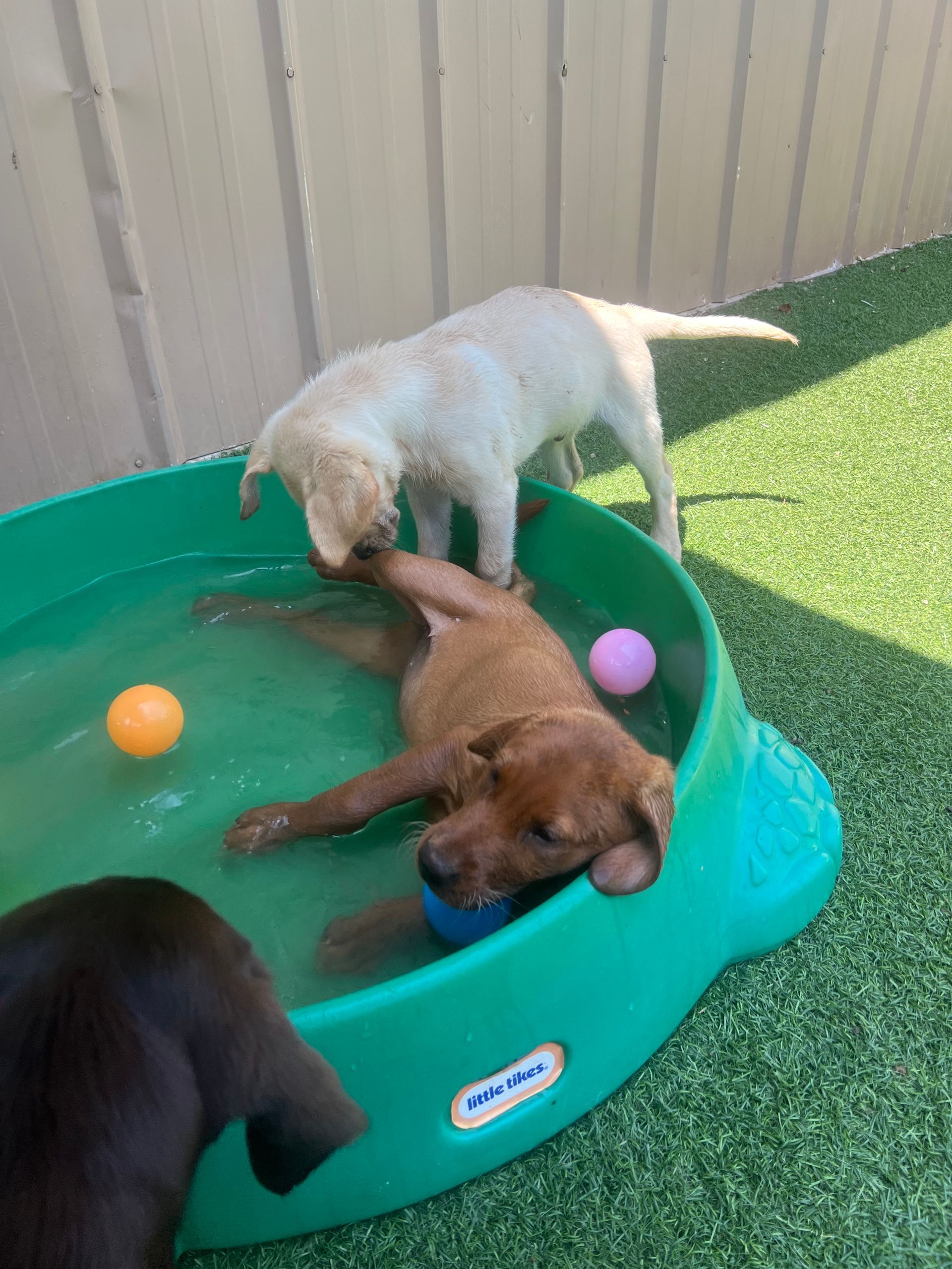 This camp is a 4 week session for puppies from 5 months to 11 months at start of camp. Your puppy will work on basic manners both new and enhance some already learned ones. They will also be introduced to some fitness equipment and be involved in our daycare program throughout their day with us. You will receive a nice detailed progress report upon pick up each week. Please see schedule for dates.